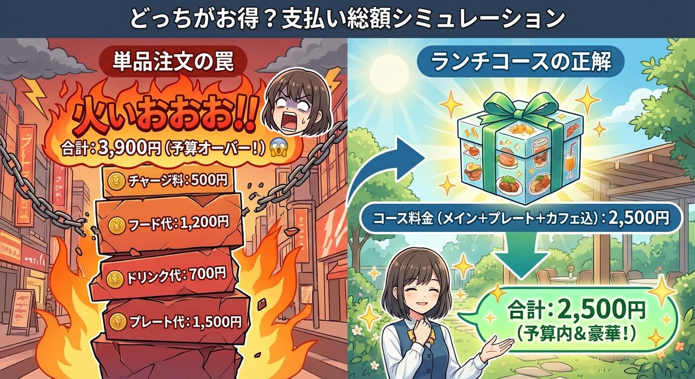 「プレート代1500円」に騙されないで!安く済ませるなら「ランチコース」一択な理由