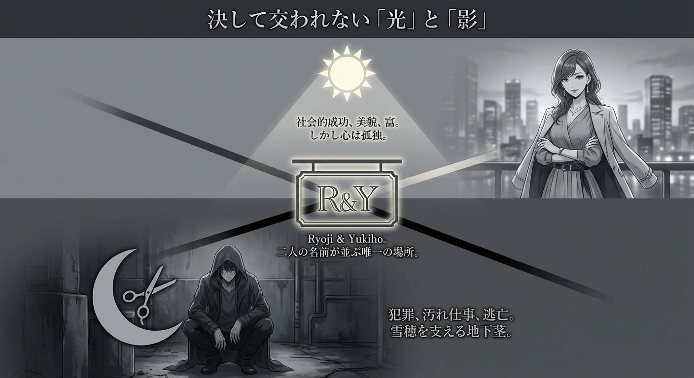 表の世界では、二人は「赤の他人」でなければなりませんでした。言葉を交わすことも、並んで歩くことも許されない。そんな二人が、唯一堂々と名前を並べることができた場所。それが「R&Y」という店名だったのです。