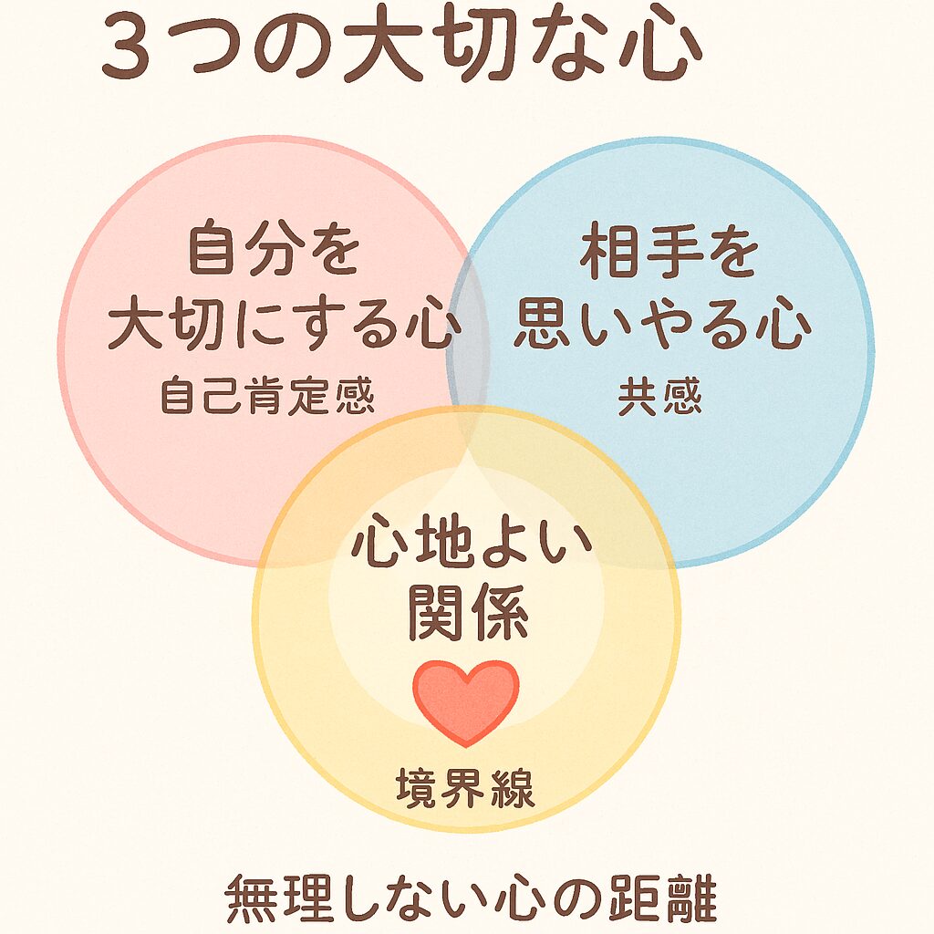 「みんな」に合わせようとすると、自分の本当の気持ちに蓋をしてしまうことがあります。でも、あなたが「こうしたいな」と思う気持ちは、とても大切なもの。その気持ちを尊重することが、自分を大切にする自己肯定感に繋がります。 - 相手を本当に思いやる心(共感)が生まれるから