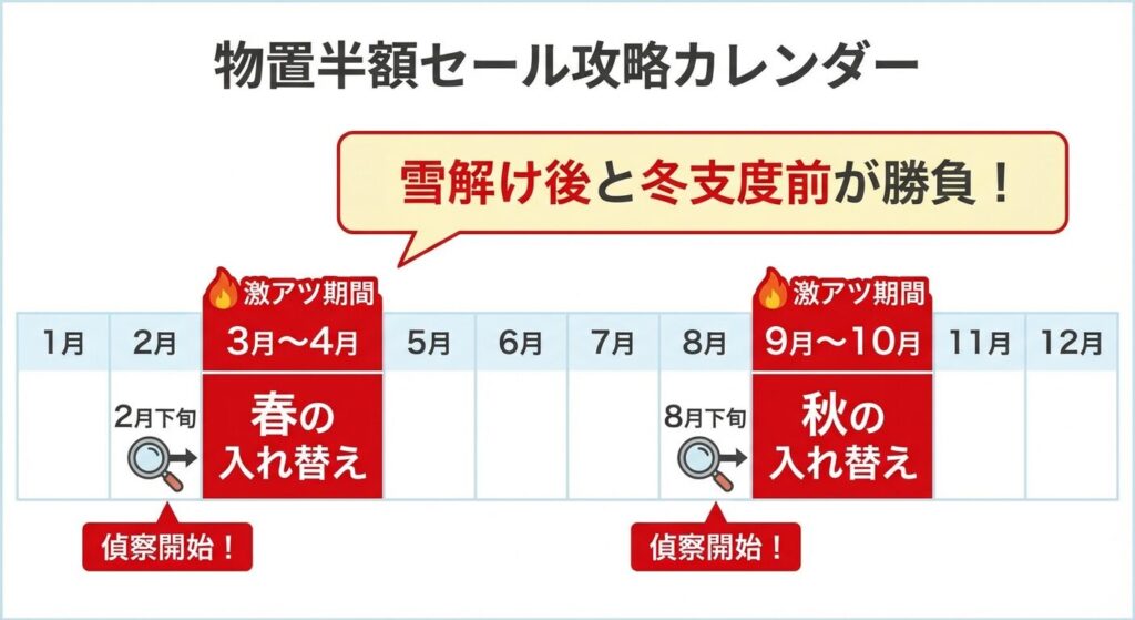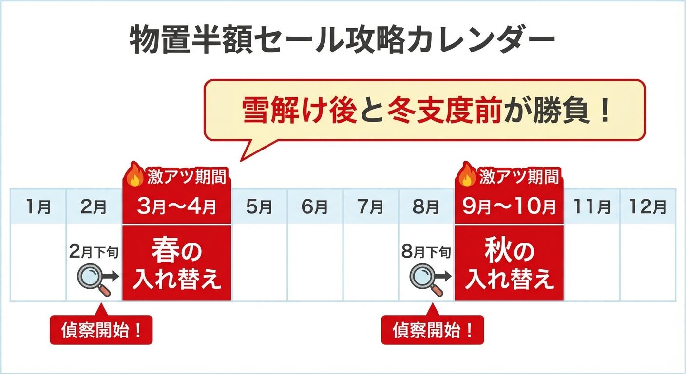 このサイクルを知っていれば、闇雲にチラシを待つ必要はありません。2月下旬と8月下旬、これが勝負の始まりです。
