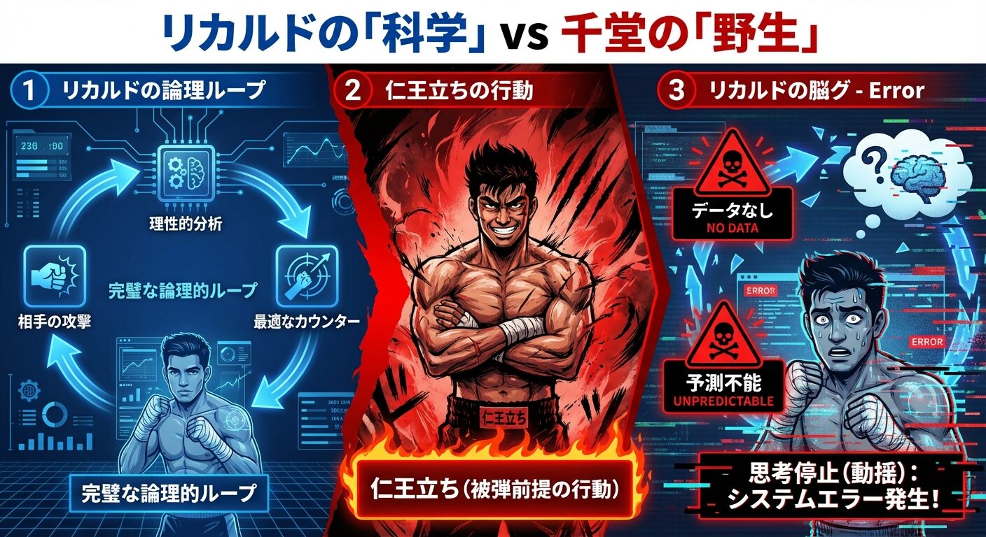 結論から言えば、千堂武士の「仁王立ち」は、リカルド・マルチネスという「科学(コスモス)」に対する、千堂武士という「野生(カオス)」からのアンチテーゼです。