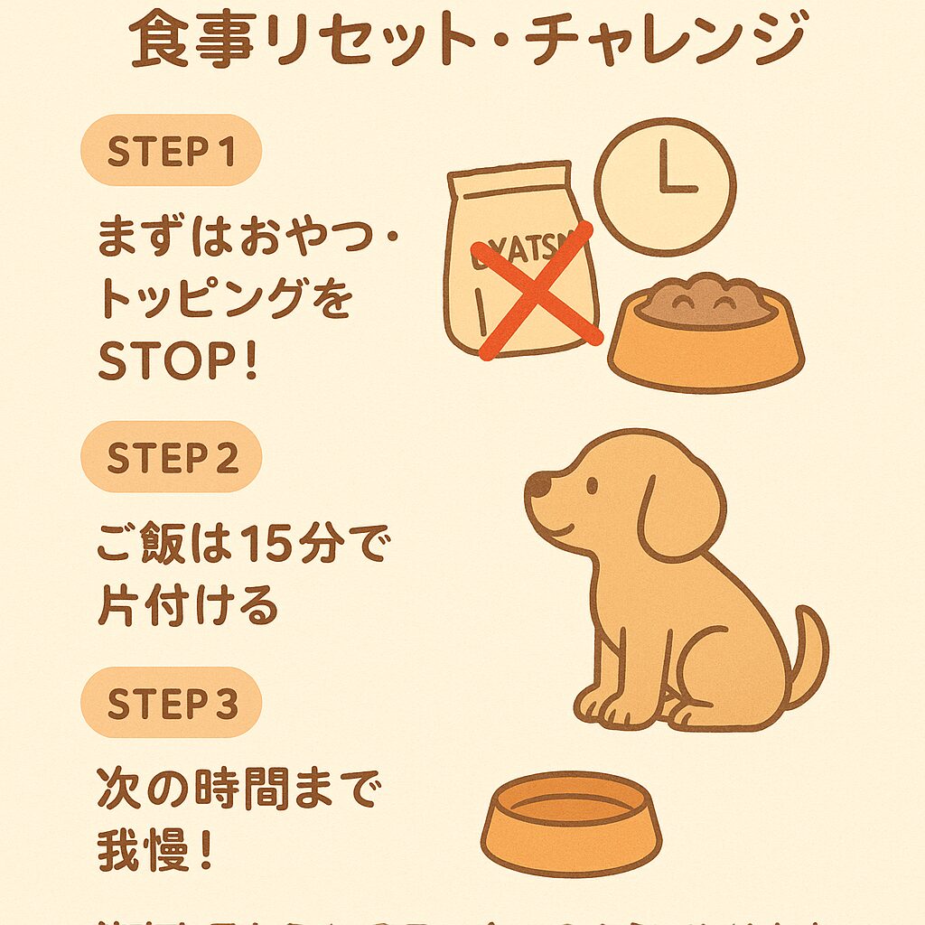 - おやつ・トッピングを完全に中止する: まずはドライフードだけで必要な栄養を摂る、という基本に立ち返ります。