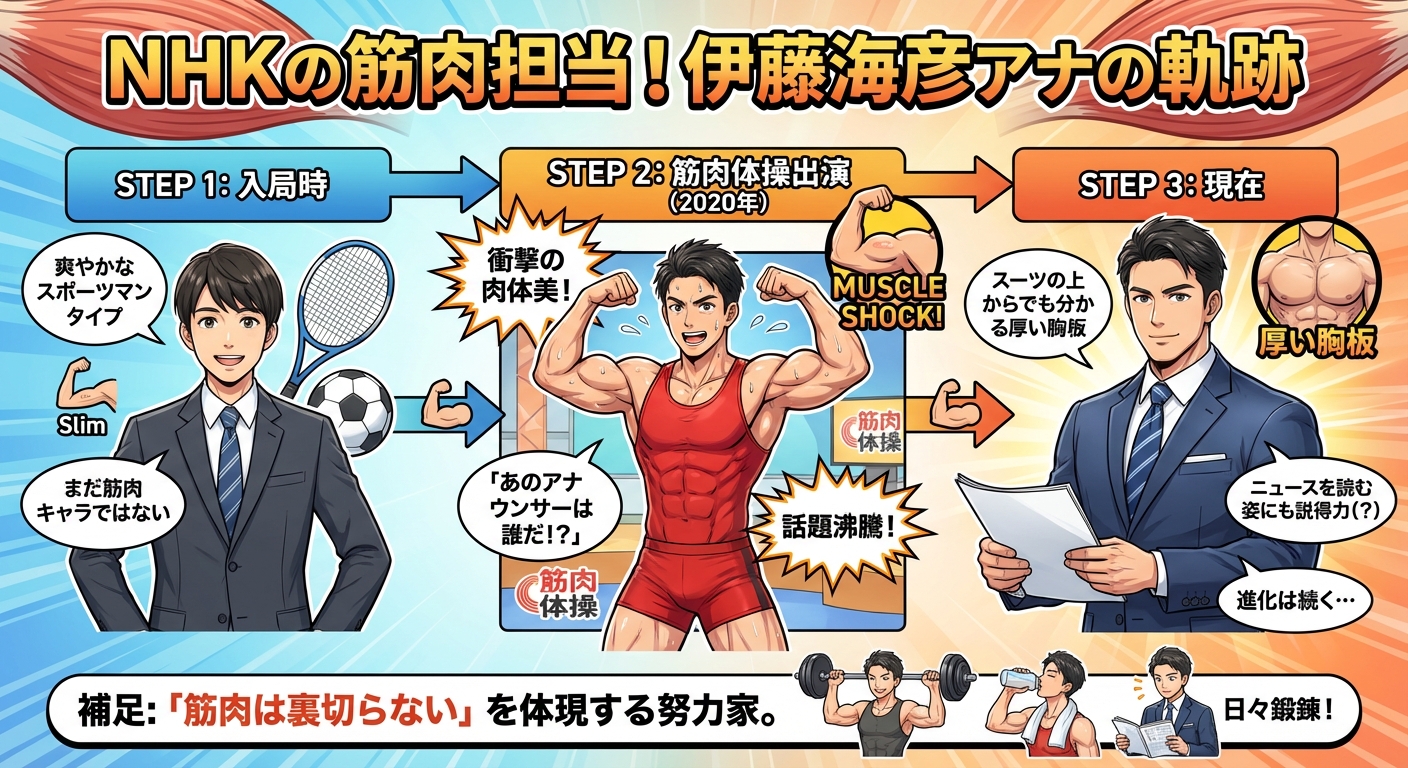 伊藤海彦アナの「結婚」の噂の裏には、「筋肉への情熱」と「仕事へのプロ意識」がありました。