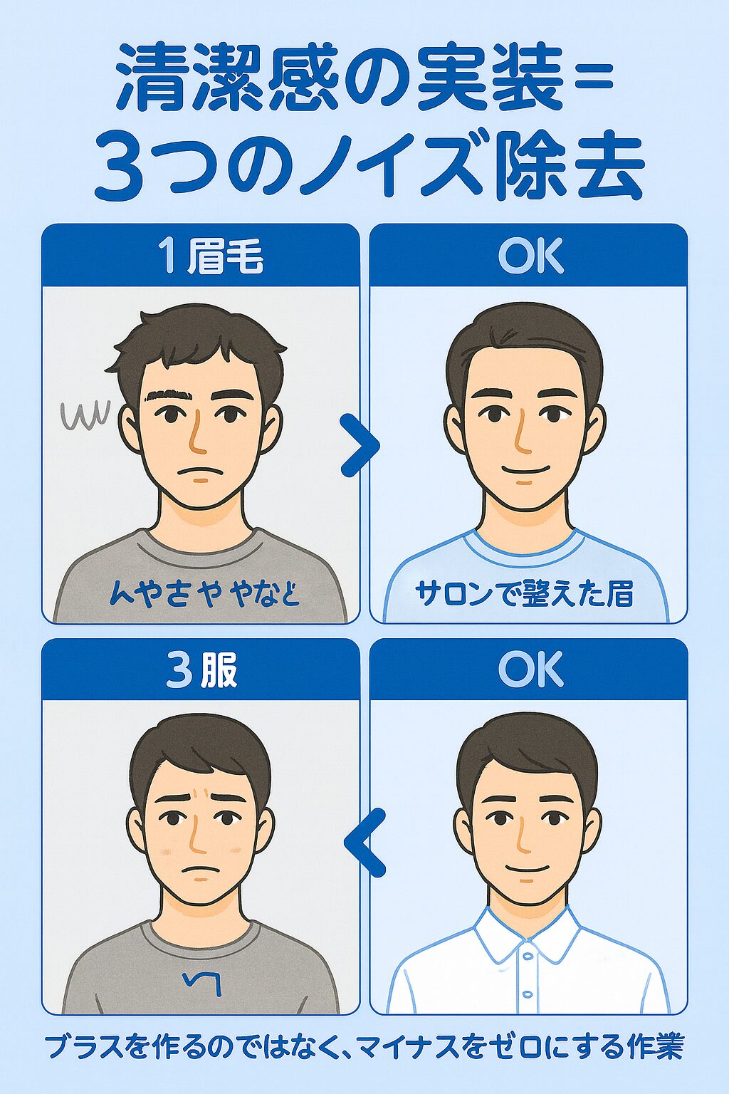 Step1【外見の実装】:「清潔感」とは「ノイズ除去」である。今日から消すべき3つのノイズ