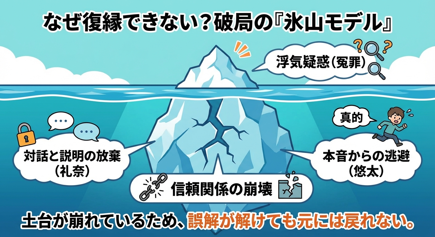 しかし、主人公の悠太は復縁を選びませんでした。その理由は、浮気疑惑以前から二人の間に横たわっていた「信頼と対話の欠如」にあります。