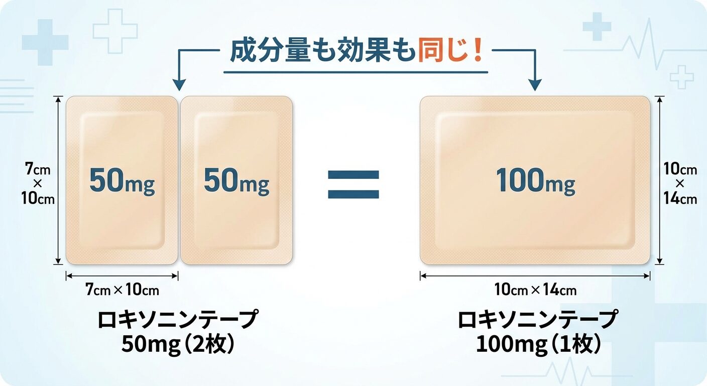 ロキソニンテープの50mgと100mgの違いは、単なる「サイズ」の違いです。