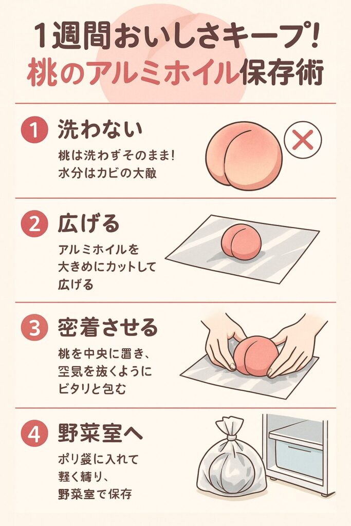 現代の環境に合わせた「アルミホイル+野菜室」という新しい常識で、大切な桃を守ってあげてください。