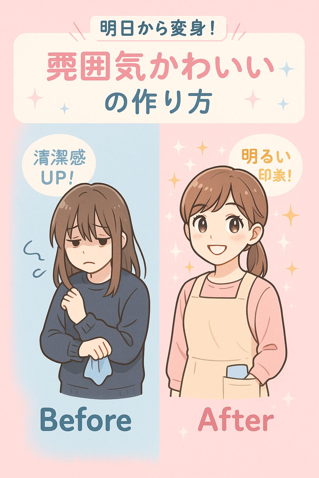あなたが悩んでいる「顔の造形」は、男子にとってはそれほど重要ではありません。それよりも、「清潔感」のある前髪、「育ちの良さ」を感じさせるハンカチ、そしてあなただけの素敵な「笑顔」。この3つが揃えば、あなたは誰よりも魅力的な「雰囲気かわいい」女の子になれます。