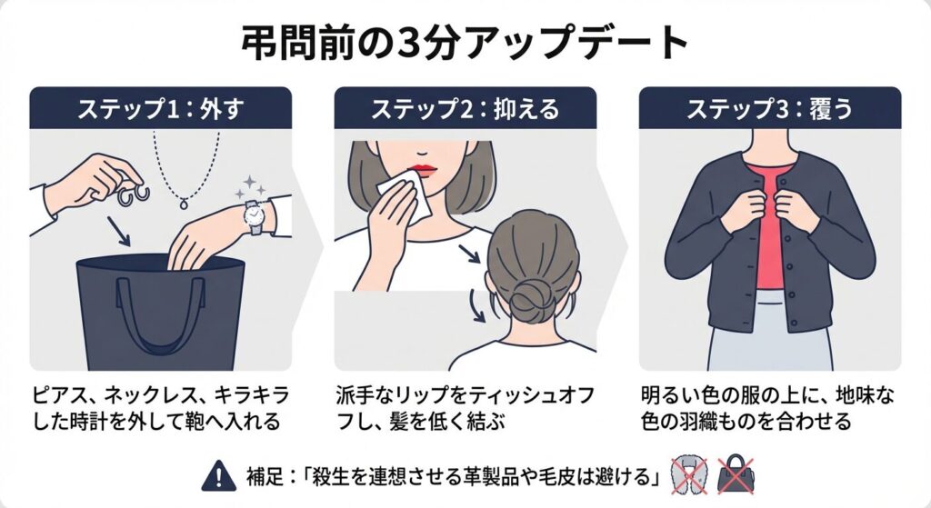 【3分で完了】手持ちの服から「派手さ」を引く!弔問前の引き算マナー