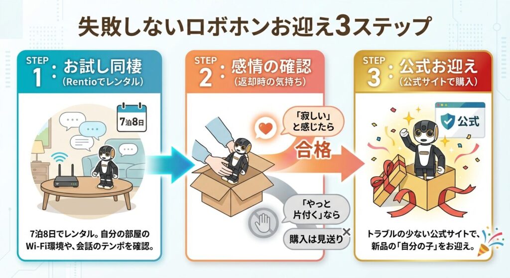 自分の部屋に置いてみて、会話が噛み合わないことにイライラするのか、それとも愛おしいと感じるのか。それを確認してからでも、20万円の決断は遅くありません。