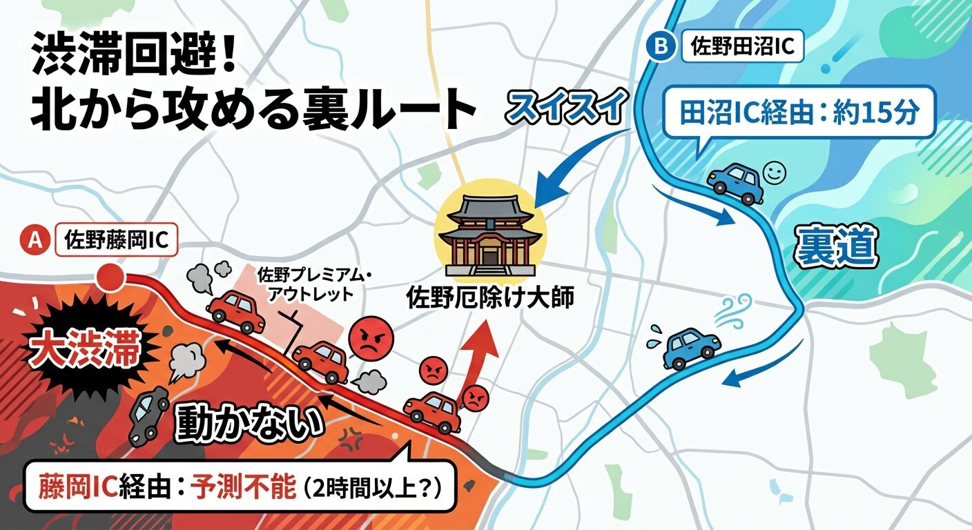 佐野厄除け大師の渋滞は「やばい」ですが、回避可能です。ポイントは「IC選び」と「時間帯」だけ。