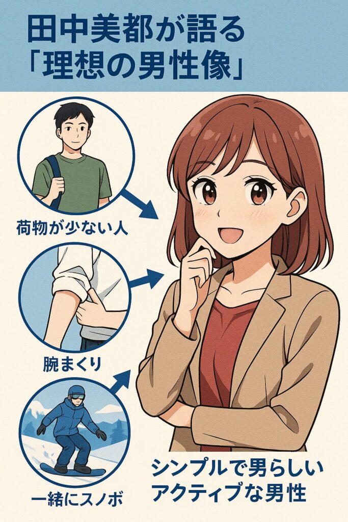 - 好きなタイプは明確: 「荷物が少ない人」「腕まくりをする人」「スノボに行ける人」が彼女の理想です。