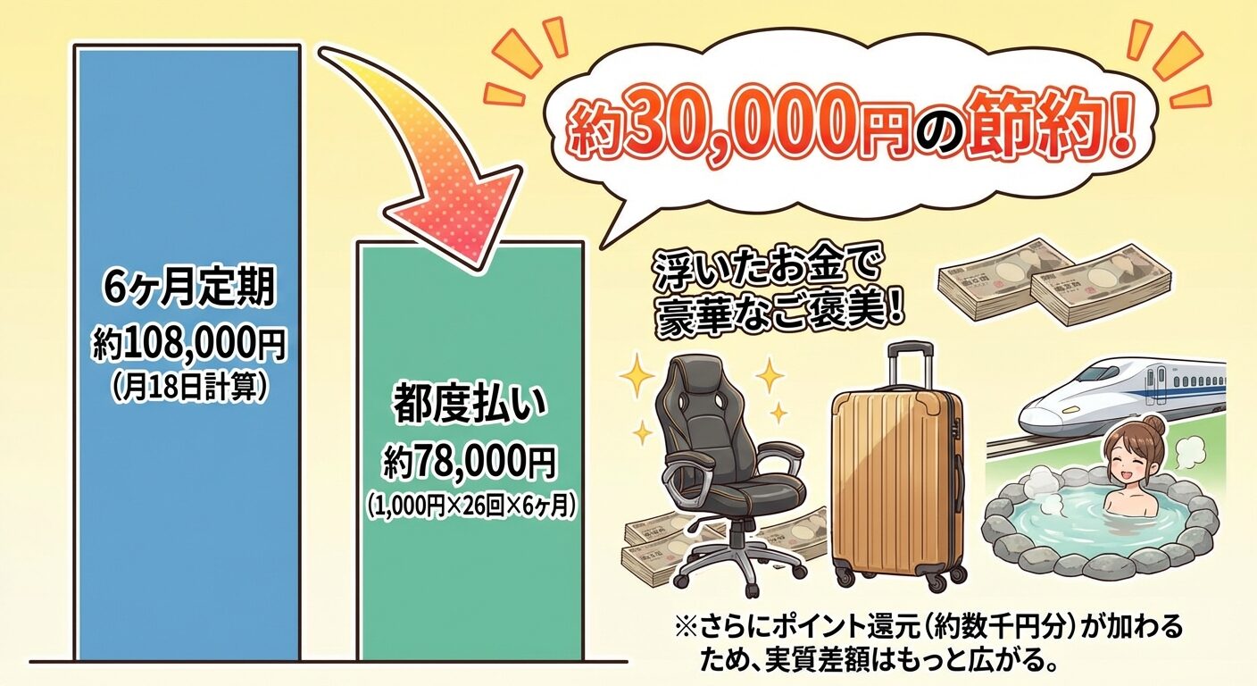 【シミュレーション】定期 vs 都度払い。半年で「3万円」の差が出る現実
