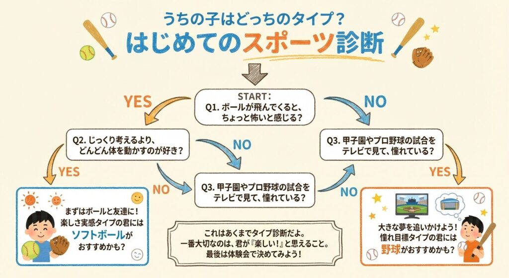 - 安全性や始めやすさを重視するなら、まずはソフトボールでボールに慣れるのがおすすめ。